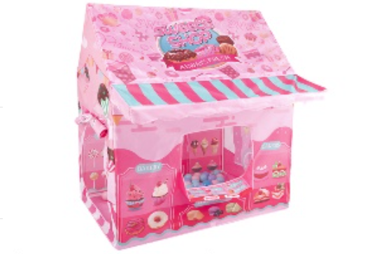 Barraca de Brincar para Crianças: formato de loja de doces e dinossauros, estimula a imaginação e diversão, ideal para atividades lúdicas. Fácil de montar e desmontar. 63x23x11CM