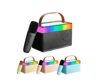 Caixinha de som com microfone e com led.