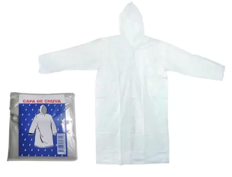 Capa de chuva transparente com capuz, confeccionada em material impermeável e leve. Ideal para proteção contra a chuva em eventos ao ar livre, proporcionando conforto e praticidade. Compacta e fácil de transportar, vem em embalagem prática para armazenamento e uso emergencial.