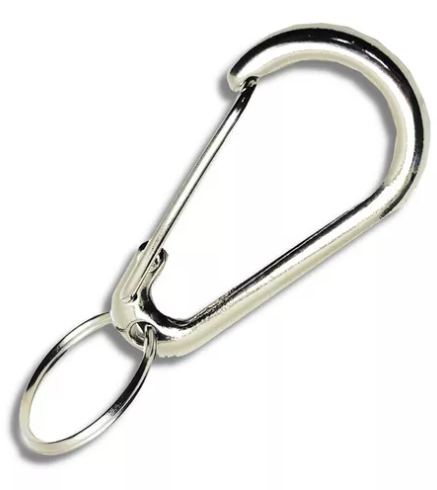 Chaveiro com mosquetão gancho (com card) metálico com argola chaveiro, ideal para prender chaves, ferramentas e acessórios de forma prática e segura. Perfeito para uso diário, em atividades ao ar livre e em projetos de bricolagem, proporcionando conveniência e versatilidade.