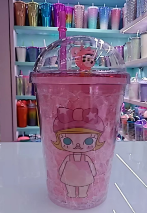 Copo de gelo princesa + impressão conforme mostrado + canudo correspondente à cor