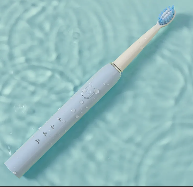 Escova de dentes elétrica sofisticada na cor azul, acompanhada de duas cabeças de reposição. Oferece uma escovação eficiente e moderna, combinando alta tecnologia e design elegante para uma experiência superior de higiene bucal.