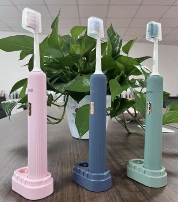 Escovas de dentes elétricas em cores suaves, rosa, azul e verde, com design ergonômico e bases de carregamento correspondentes. Perfeitas para uma higiene bucal eficiente, combinando praticidade e estilo em um único produto.