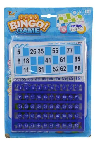 Jogo de Bingo completo, incluindo cartelas numeradas e tabuleiro de números. Ideal para diversão em família e entre amigos, proporcionando entretenimento clássico e interativo para todas as idades.
