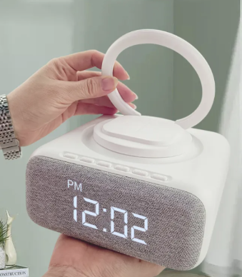 Tipo-C Carregamento 1200mAH Alto-falante compatível com Bluetooth 5.0 Carregamento sem fio Despertador digital Rádio FM Potência de saída: sistema de som de 15W Capacidade da bateria: 1200 mA