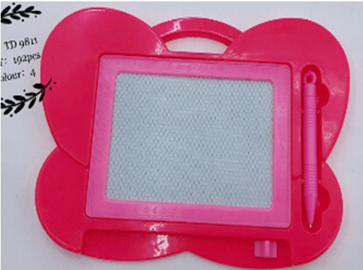 Quadro de escrita magnética infantil em formato de borboleta, na cor rosa vibrante, com caneta magnética inclusa. Ideal para estimular a criatividade e o aprendizado das crianças de forma lúdica e prática. 23*17cm
