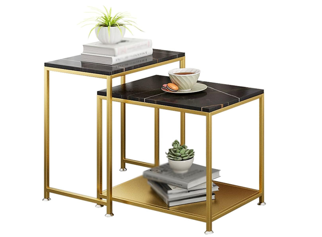 3. A mesa de centro combinada inclui uma mesa alta e uma mesa baixa, com um design de prateleira, que aumenta o espaço de armazenamento e é adequada para espaços pequenos.