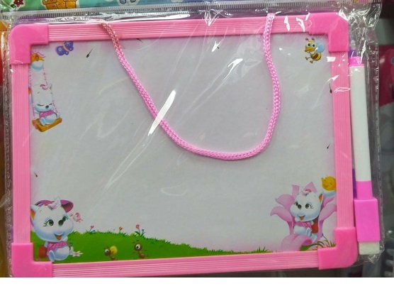 Quadro de escrita magnética infantil na cor rosa, ideal para desenhos e escrita com caneta magnética inclusa. Perfeito para estimular a criatividade das crianças em um ambiente lúdico e educativo.
